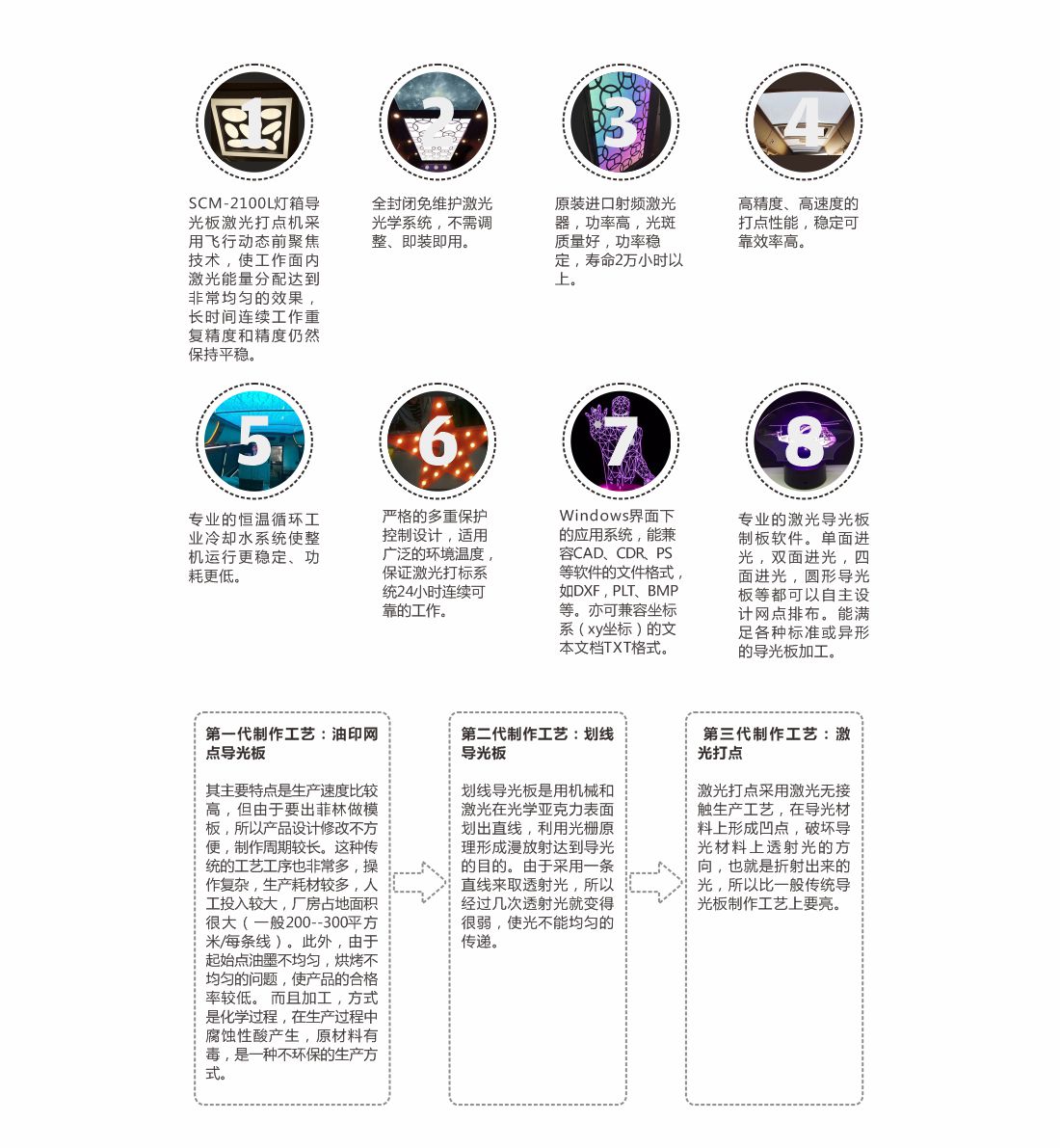 激光導(dǎo)光板克服了傳統(tǒng)印刷制導(dǎo)光板的缺陷,是新的替代品。它比同等面積的傳統(tǒng)燈箱,省電60%以上,且整個(gè)導(dǎo)光面透光均勻明亮,節(jié)能環(huán)保,壽命比印刷型的長(zhǎng)3-5倍。故市場(chǎng)前景廣闊。