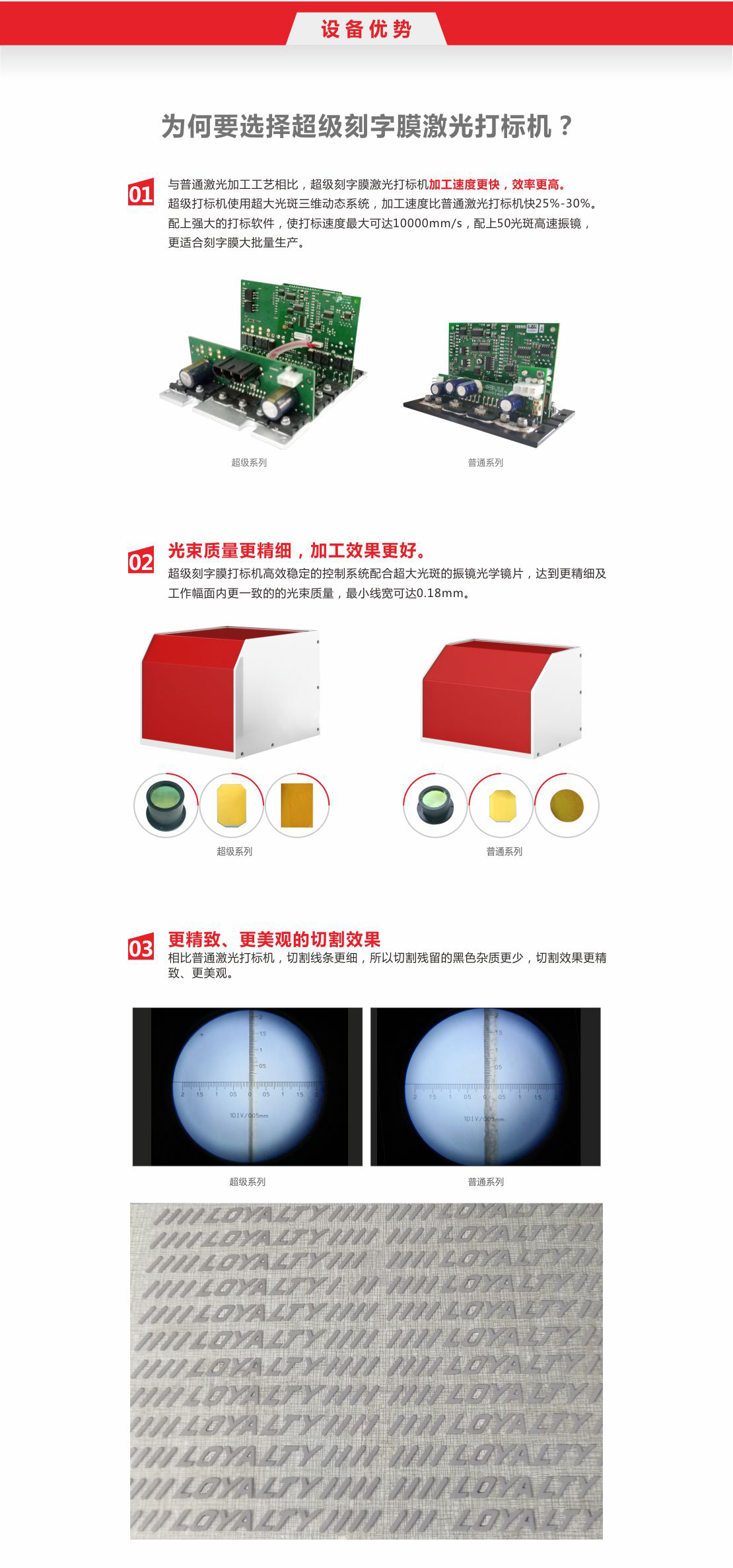 傳統(tǒng)刻字膜刻字機(jī)要刀壓、角度、速度等等因素都容易造成產(chǎn)品質(zhì)量問(wèn)題,速度太快容易跳刀,刻不斷等等。而采用激光打標(biāo)技術(shù)進(jìn)行刻字膜的雕刻,速度超快精度更高,電腦精準(zhǔn)控制精度可達(dá)0.1mm,制作的刻字膜圖案更精美。