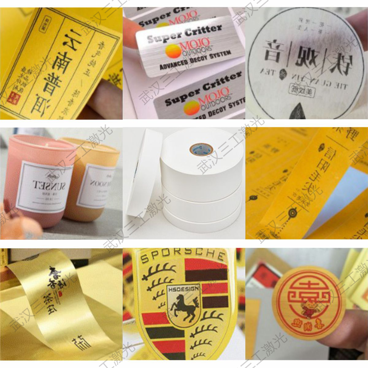 適用于銅版紙、牛皮紙、熒光紙、珠光紙、其它紙、PET、布標等多種面材,PET、OPP 、合成紙 、金/銀聚脂等多種膜類的不干膠激光模切。
